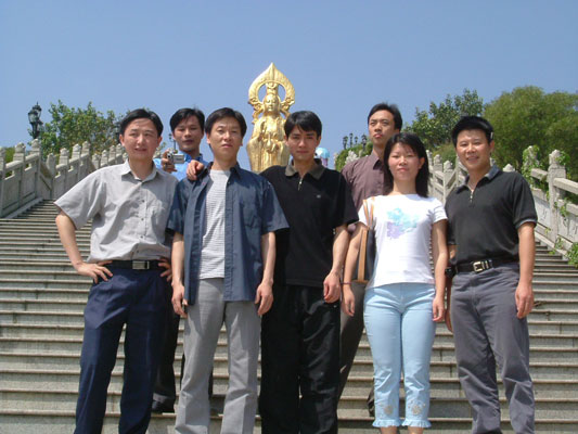 蓮花山上南海觀音鍍金像前合影