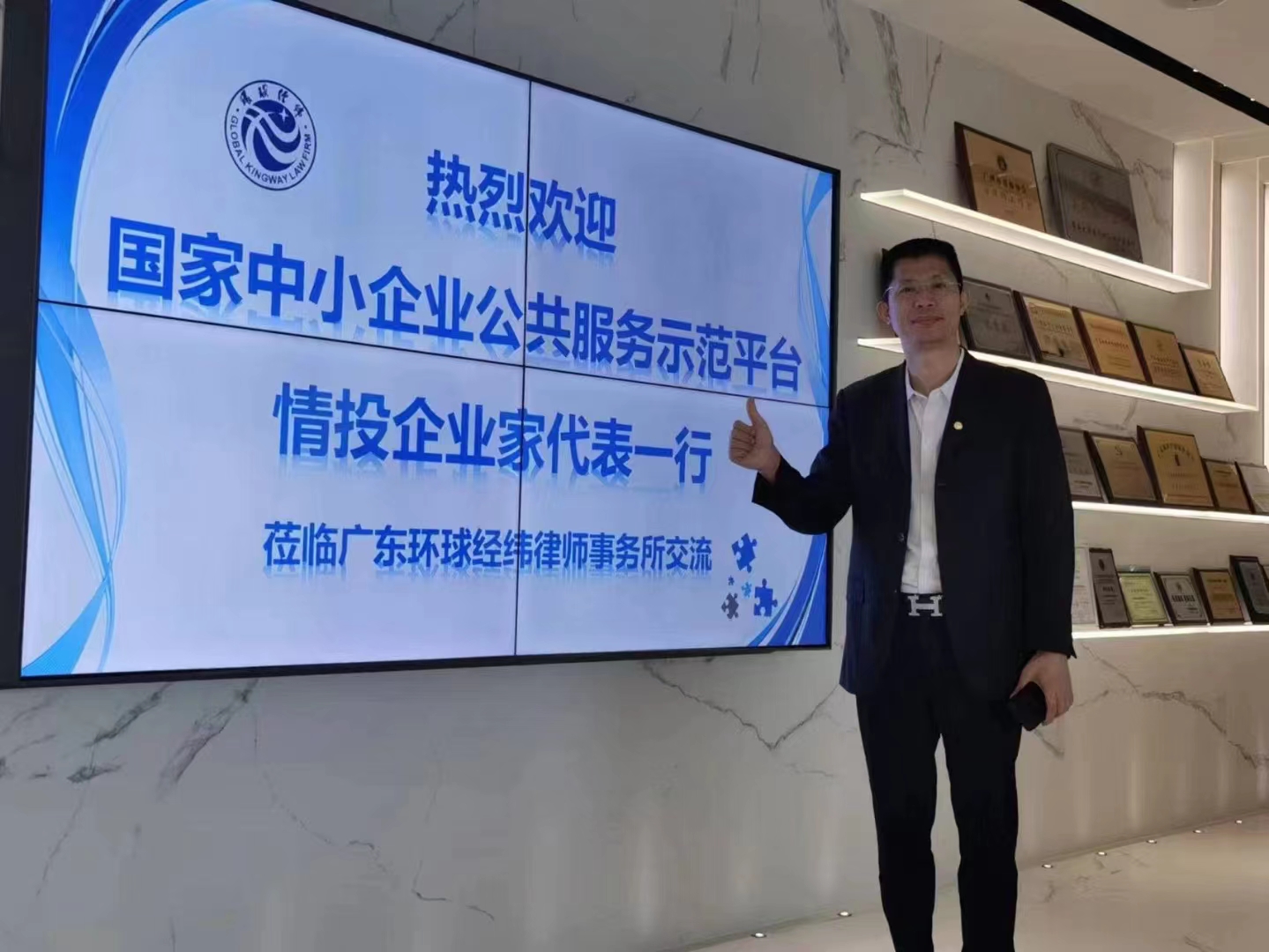 情(qing)投企業家(jia)法律(lv)交流會今天在(zai)廣東環(huan)(huan)球經緯(wei)律(lv)師事務所(suo)隆重舉行,我(wo)僅代表國(guo)家(jia)中小(xiao)企業情(qing)投服務平臺,感謝各位專家(jia)、企業家(jia)代表光臨(lin),特(te)別感謝主辦方環(huan)(huan)球經緯(wei)周(zhou)卡方主任(也(ye)是我(wo)的(de)本家(jia)同學親上加親),感謝情(qing)投法律(lv)委曹建宇主任親臨(lin)指導(dao)工作(zuo)。