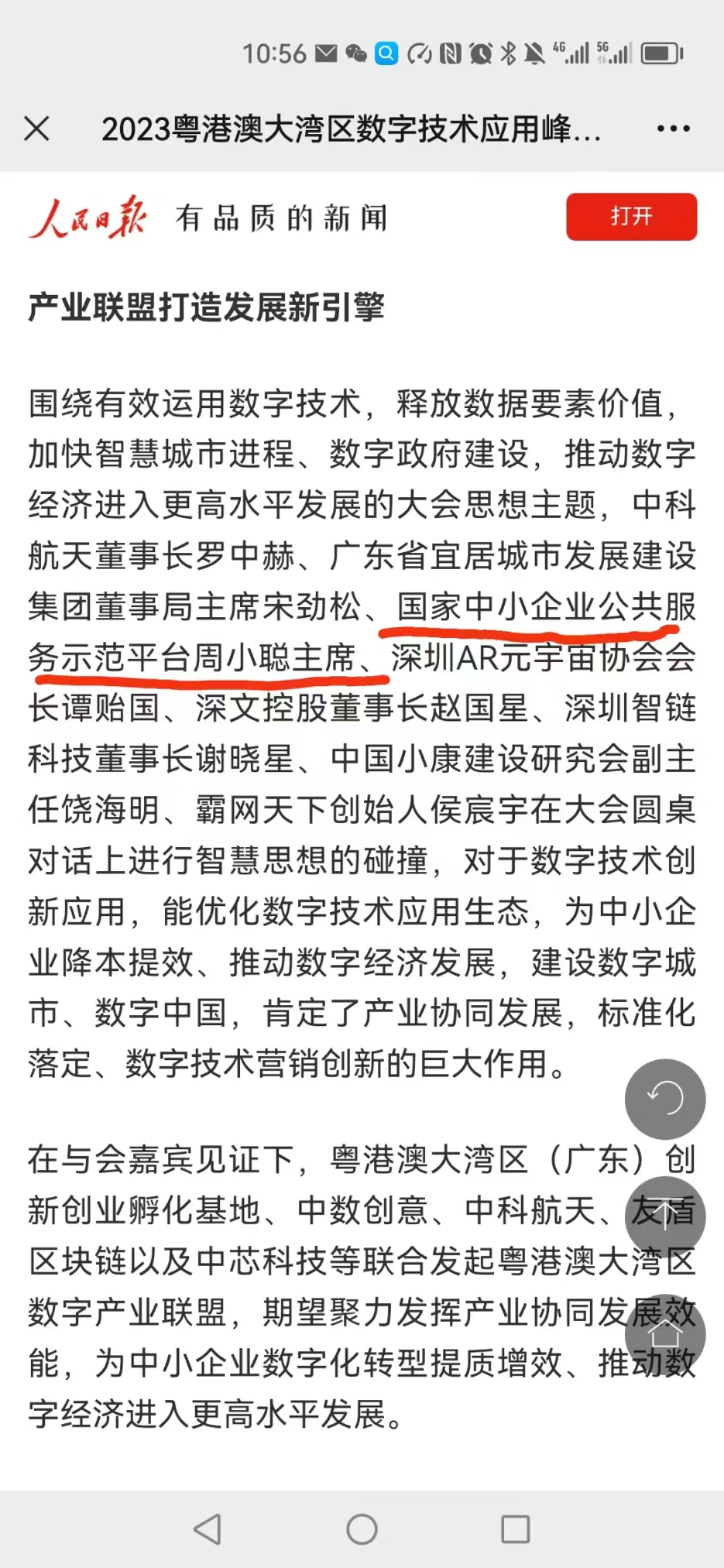 周小聰出席粵港澳大灣區數字技術應用峰會做數字營銷賦能中小企業核心競爭力發言