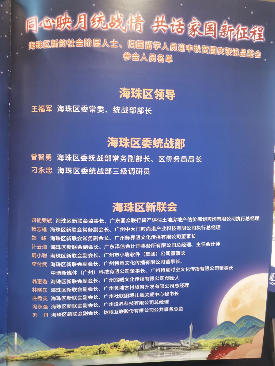 國家中小企業公共服務情投平臺主席、小聰軟件董事長周小聰出席海珠區“同心映月統戰情、共話家國新征程”活動