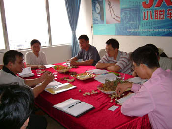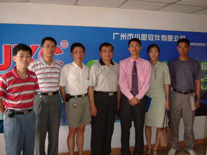 廣州市海珠區經濟發展局黃成柱局長一行5人于2003年8月21日前來指導和檢查安全生產工作 從右起第4位市黃成柱局長,第3位是廣州市小聰軟件公司周小聰總經理 從左起第2位是黃成柱局長作重要講話 從左起第2位是黃成柱局長 從右起第2位是黃成柱局長