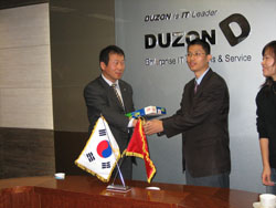 KIA(起亞)集團、現代集團和當地著名IT企業韓國得珍公司,廣州市軟件協會副會長周小聰先生代表廣州市軟件協會向韓國得珍公司贈送小聰軟件紀念。