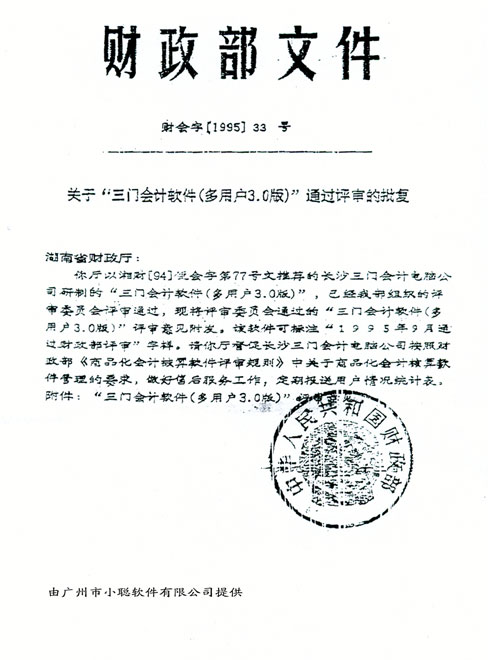 “JXC小聰三門財務系統”通過國家財政部評審