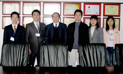 中山中拓員工和彭總(左三)與小聰(cong)軟件余沐生總(zong)助及渠道部(bu)員(yuan)工(gong)合(he)影