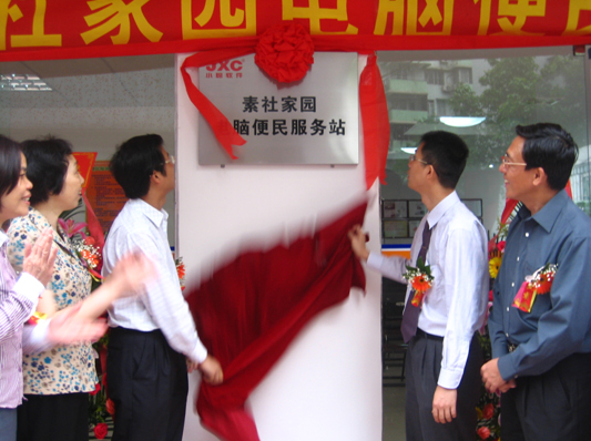 最后,與會領導共同為“素社家園”電腦便民服務站揭幕, 并向20名特困戶贈送了小聰軟件一年的免費電腦上門維護服務卡,用戶只要在工作時間撥打4008308637免費熱線電話,即會有工程師在2小時之內趕到現場,為持卡者進行現場維護服務。將企業級服務延伸到社區是企業回饋社會的有效形式,“素社家園”揭幕式的圓滿結束,意味社區服務功能的進一步完善,意味著企業發展與民生緊密結合,符合當今建設科學和諧社會的主題。
