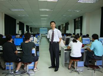 (學生在多媒體教室實訓)                          (周小聰董事長關注學生實訓)