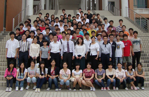 (周小聰董事長<二排左六>與全體領導、老師、工作人員和學生合影)