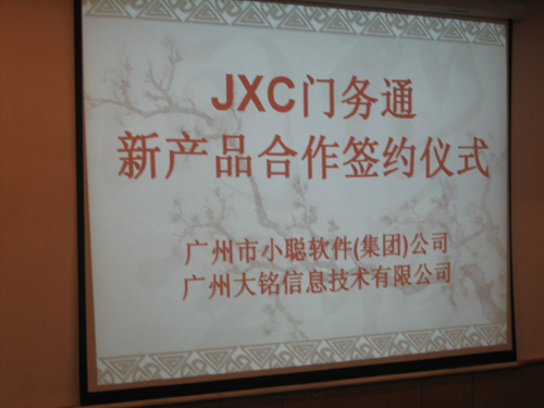 小聰公司一直致力于3W行業軟件的研發,已開發出3W 18個行業30多款軟件產品,客戶遍布全國各地,廣州大銘信息技術有限公司是一家專業從事“門務通”系列軟件研究的公司,小聰軟件與大銘信息雙方強強合作,優勢互補,簽定了“JXC門務通”合作開發協議。