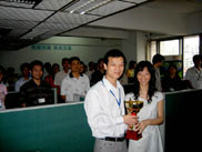 渠道一部卿海燕接受總經理助理余沐生的頒獎