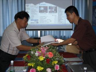 向(xiang)周副區長贈送小聰軟件(jian)專(zhuan)著《企業信息化管理理論與實務》一書作紀念