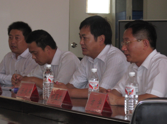 (左二(er):經貿學(xue)院院長(chang)湯成軍(jun) 中間:沭(shu)陽科技(ji)產業(ye)園書記劉玉友 右一:江蘇省(sheng)小聰軟件(jian)公司副(fu)總經理方宇)
