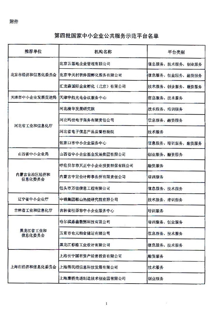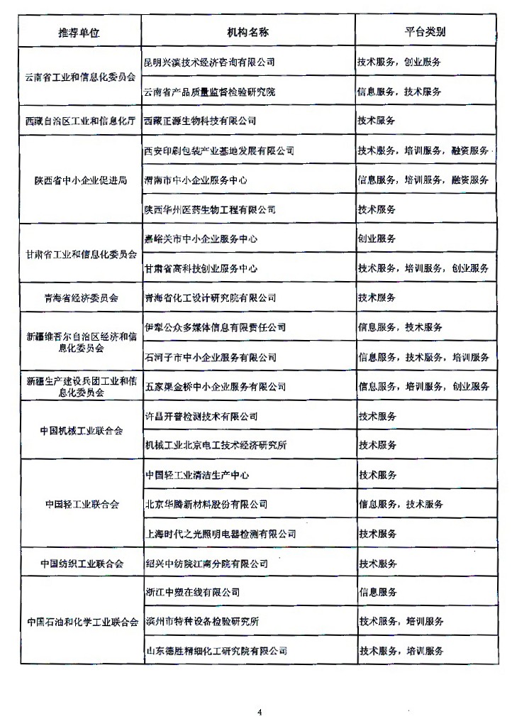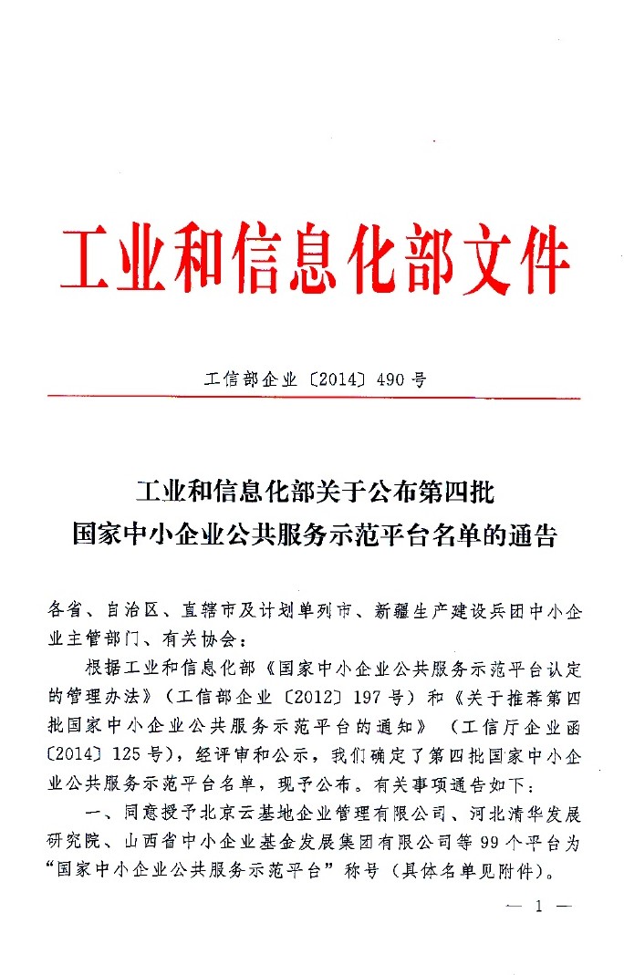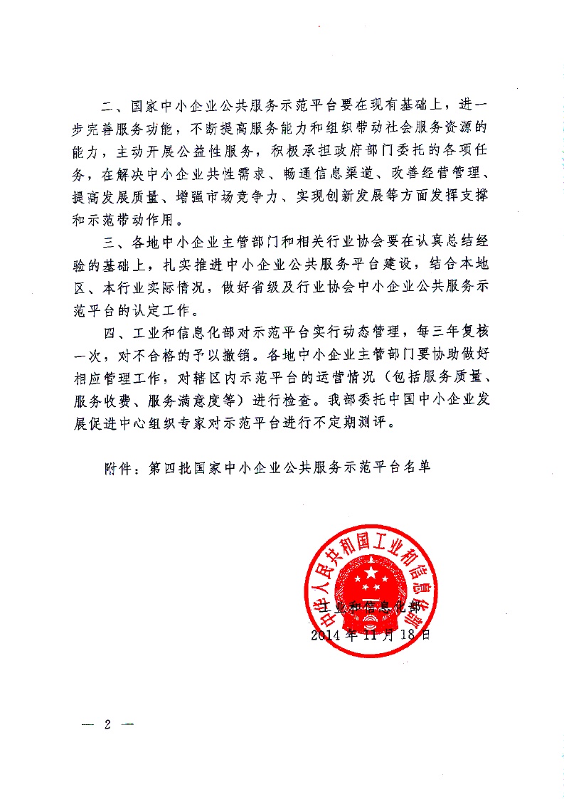 工信部企業[2014]490號:工業和信息化部關于公布第四批國家中小企業公共服務示范平臺名單的通告