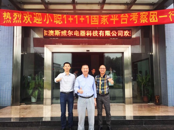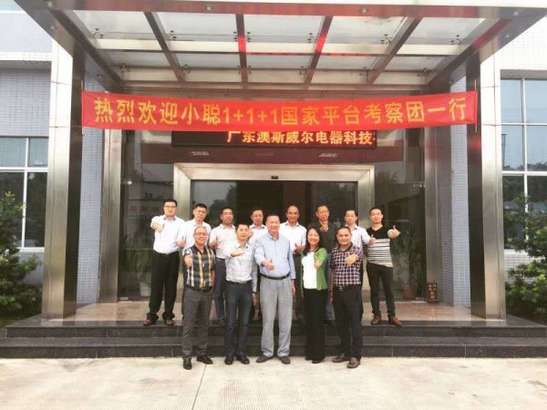 小聰1+1+1國家平臺周主席一行考察廣東澳斯威爾電器有限公司